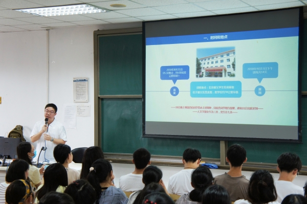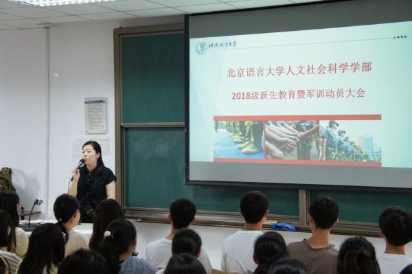 充满活力的北语校园迎来了入学报到的18级新生。为了让新生更快适应新的环境、新的生活,更好地进入军训状态,人文社会科学学部于2018年8月28日在教二301开展了“新生教育暨军训动员大会”活动。